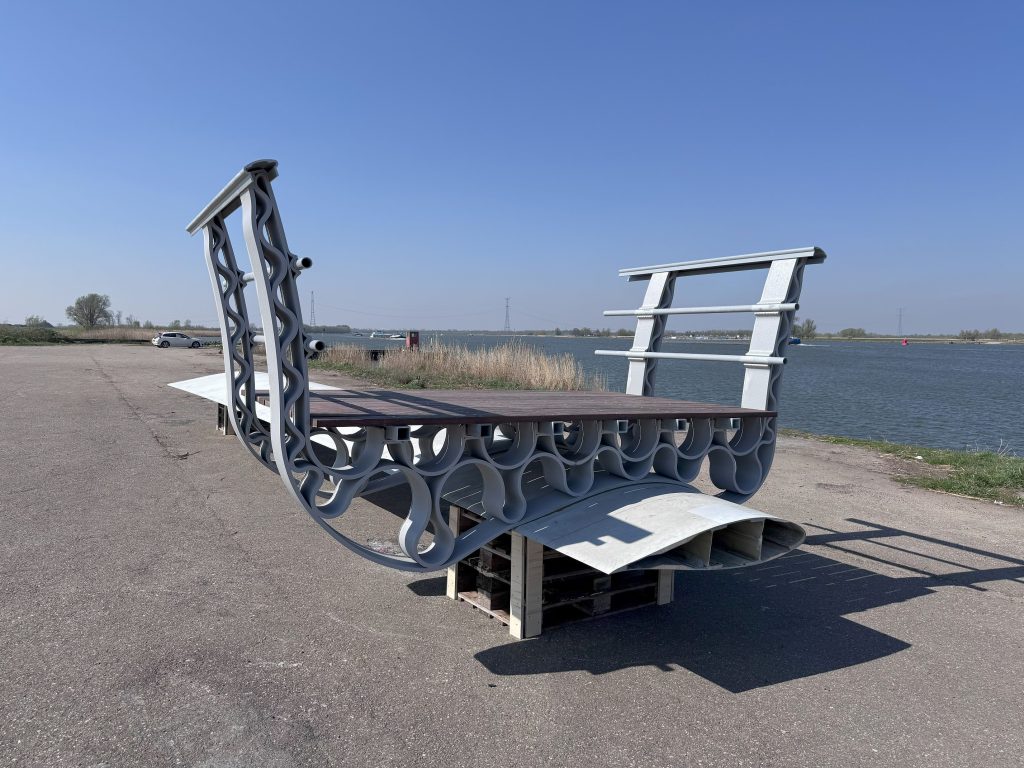 荷兰复合材料加工公司Poly Products完成了一项突破性的工程实践:利用退役的风力涡轮机叶片作为主梁,结合大幅面3D打印技术,成功建造了一