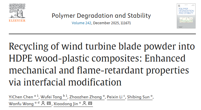 Recycling of wind turbine blade powder into HDPE wood-plastic composites: Enhanced mechanical and flame-retardant properties via interfacial modification