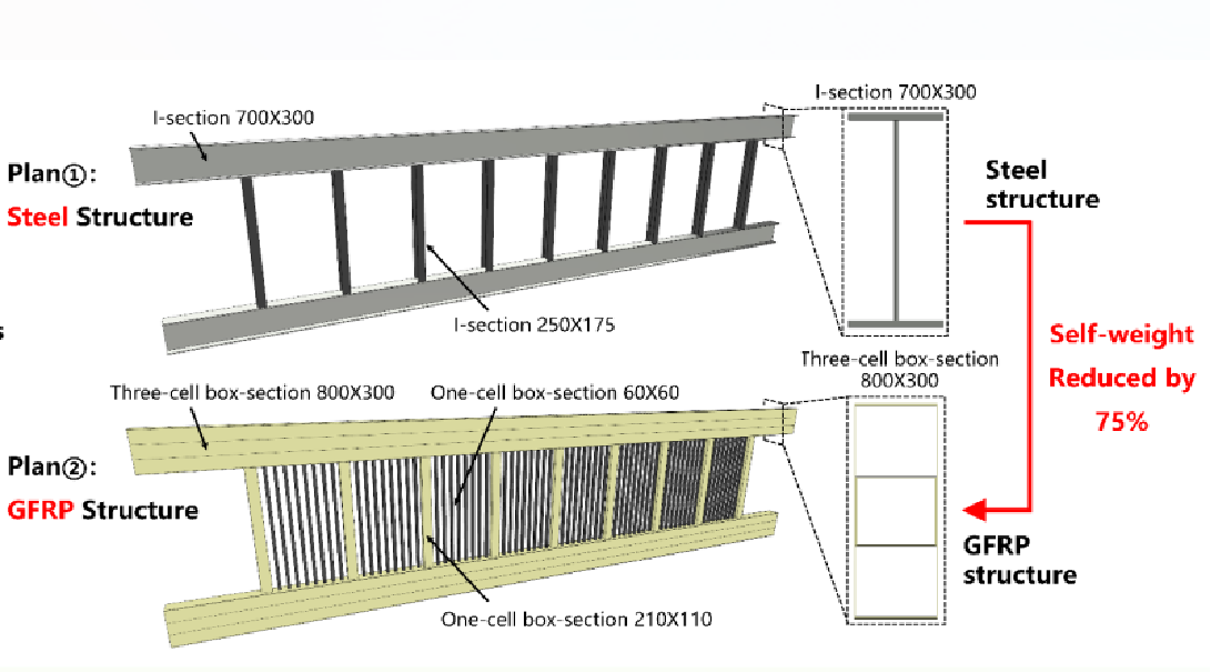 1. 研究纤维复材拉挤型材弹性模量和可连接性提升技术;
